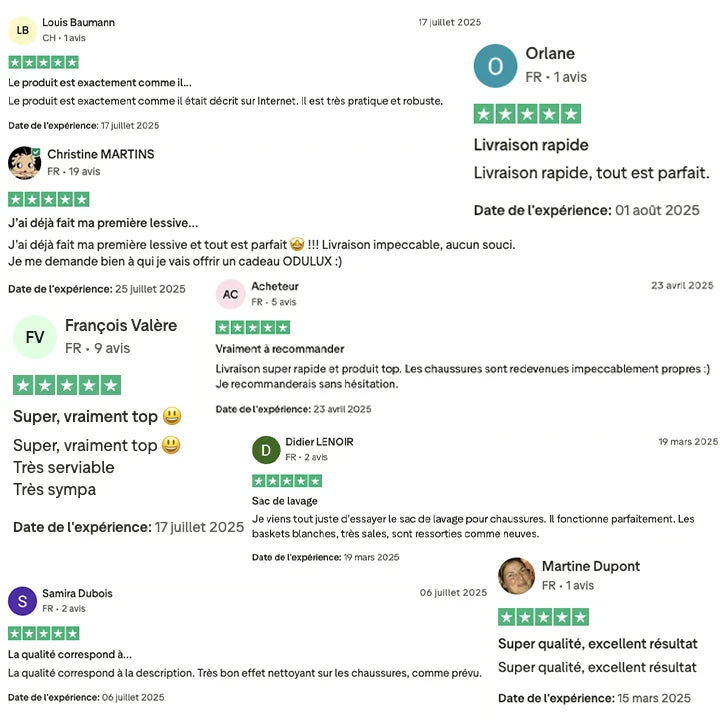 Ont affirmé que leurs chaussures ressortaient parfaitement propres et sans odeur dès le premier lavage.