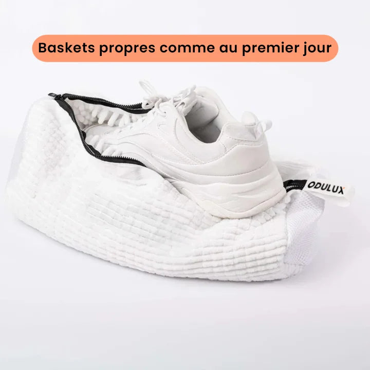 Le sac de lavage pour chaussures Odulux® met fin aux lavages à la main chronophages. Ses milliers de fibres douces protègent vos chaussures en machine et les rendent à nouveau éclatantes – sans frotter et sans les abîmer.